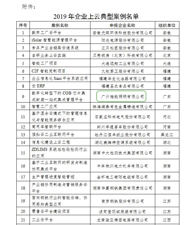 這次有幸被工信部列為2019年企業(yè)上云典型案例,是我們多年努力的結(jié)果,也是一個新的開端,金年会jinnian照明將繼續(xù)苦練內(nèi)功,用最好的產(chǎn)品回饋到我們的客戶和社會。